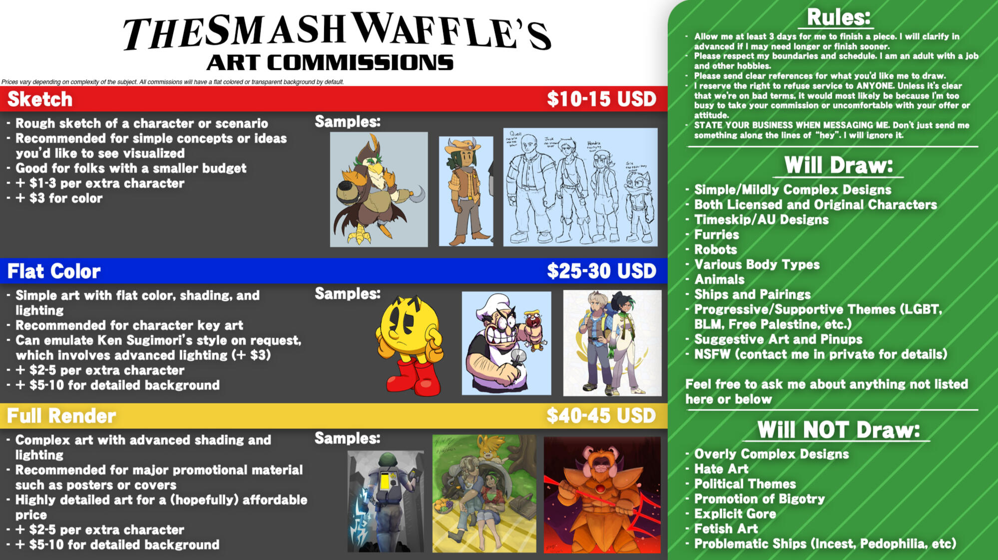 25 y/o, He/Him, Straight (Mildly Bicurious), Autistic Hey, I'm TheSmashWaffle, or Waffle for short if you will! I'm an artist who's been drawing at least since I was 5, and I specialize most in digital artwork. I studied art and graphic design for 4 years at both community college and university and have earned both an associate's and a bachelor's degree for my efforts. I'm still trying to figure myself out, but one day I hope to have a job where I can put my creative skills to good use. As per my online presence, I like to use the internet as a platform to share my art, ideas, opinions, and more with the world. I enjoy making friends with others like me here and there, and I like to think I'm a fairly approachable person. I might step out of line sometimes since I'll admit I have my own problems here and there, but don't be afraid to tell me if I ever say or do anything that makes you uncomfortable. I'm no saint, but I don't mean harm to anybody in particular. If you'd like to learn more about me, then feel free to read the other pages on my carrd!